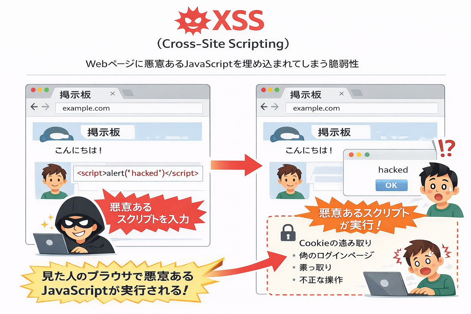 Webページに悪意あるJavaScriptを埋め込まれてしまう脆弱性